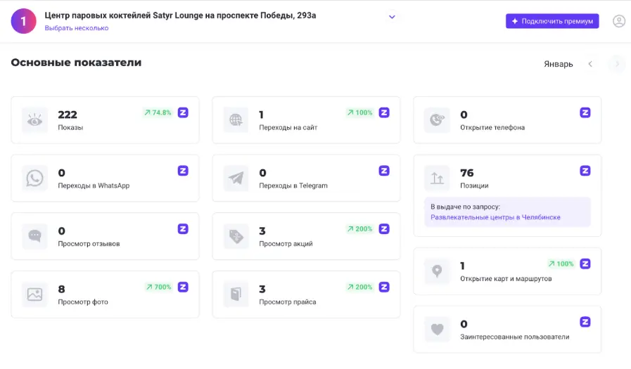 Оформлены блоки меню в Яндекс Картах, 2GIS и Zoon